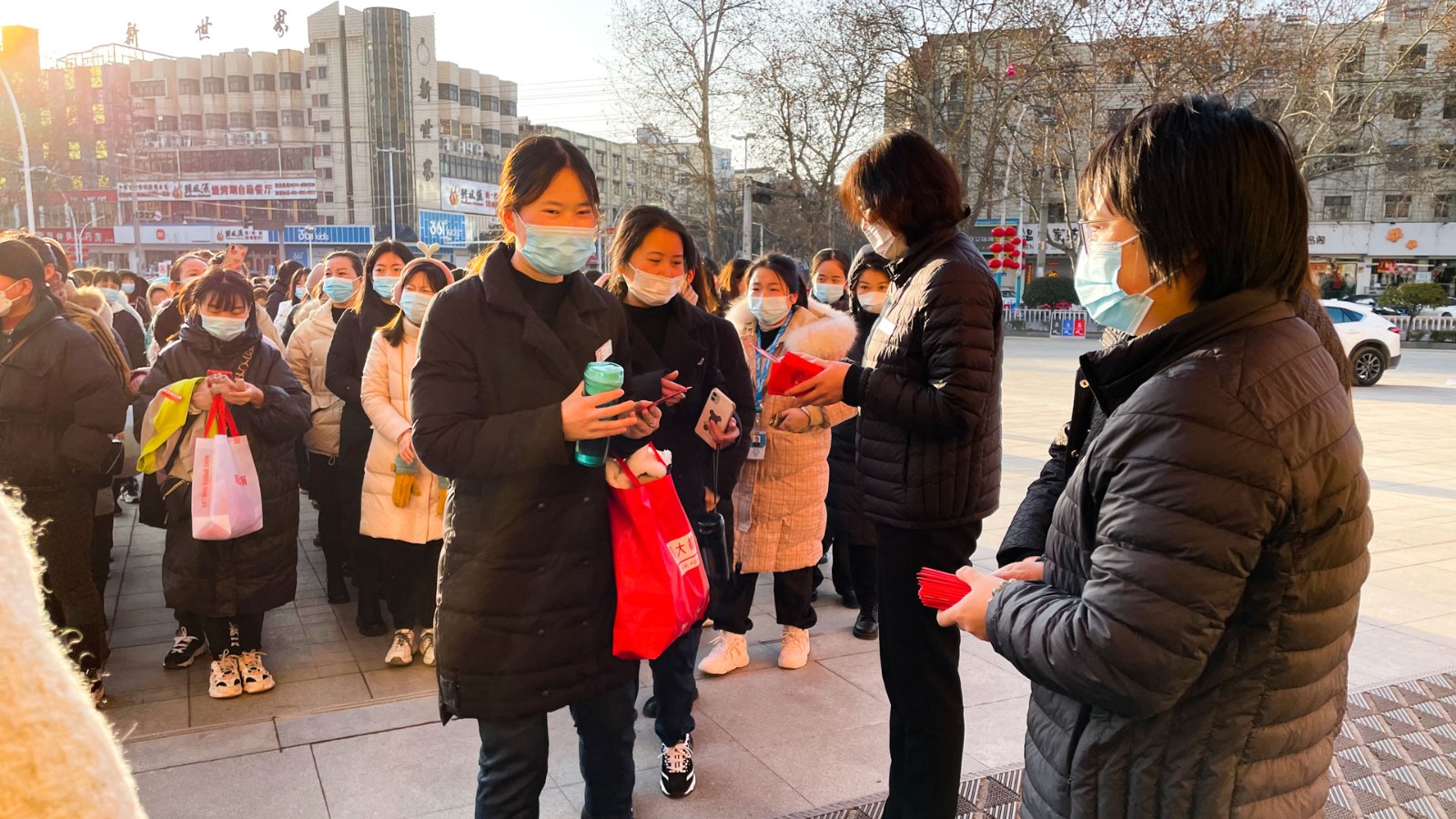 新年伊始,喜气洋洋!今天是2022年虎年大年初一,新年上班的第一天, 商贸公司副总楚雯携楼层管理人员为依然坚守在各自岗位上的一线导购发放了新年红包。