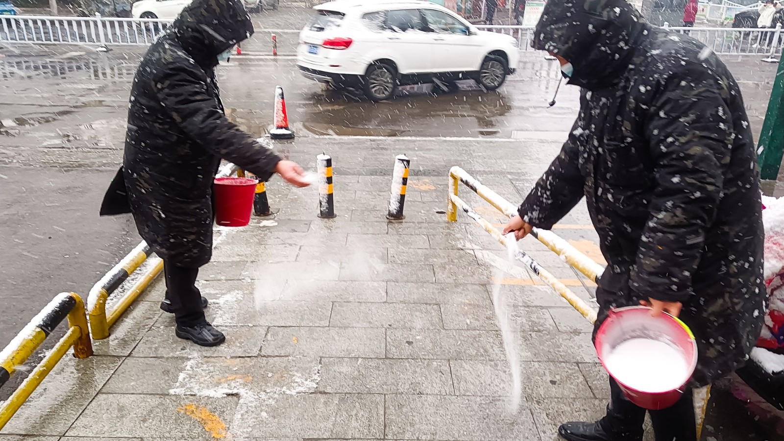 物业部迅速响应,对进场车辆车身车牌进行清洁,并对主通道、电车区坡道,台阶处等湿滑位置的积雪进行清扫和防结冰防滑处理,为顾客、业主、员工出行提供有力的安全保障。员工细致入微的用心服务也得到了顾客的好评。
