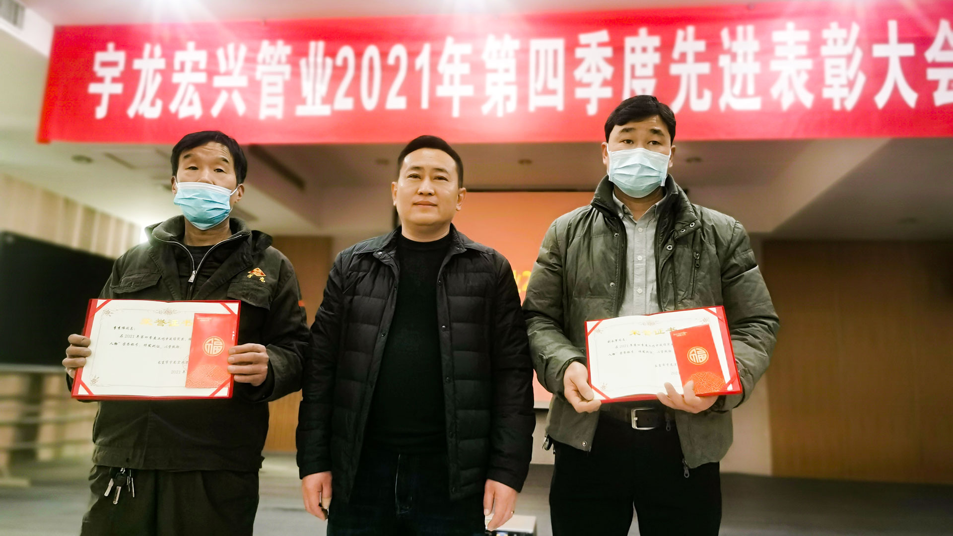 业务经理郭志锋做了表彰总结:一是肯定了先进员工的工作成绩,鼓励大家积极投入到宇龙经营中,在推动公司发展的同时实现自身的成长。二是要求大家继续保持团队的战斗力,下一年宏兴管业将“以改革为动力,以创新求发展”,同心同德,争取取得更大的成绩。三是号召所有员工以他们为榜样,脚踏实地地做事,尽心尽责地工作。