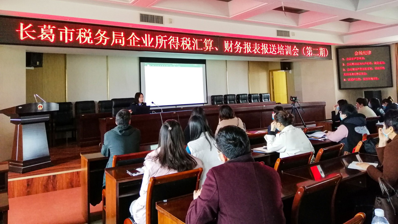 4月7日财务部人员分批次在长葛市财税大楼8楼参加由长葛市税务局举办的企业所得税汇算、财务报表报送培训会。此次培训主要包含企业所得税汇算注意事项和财务报表报送要求两方面的内容。