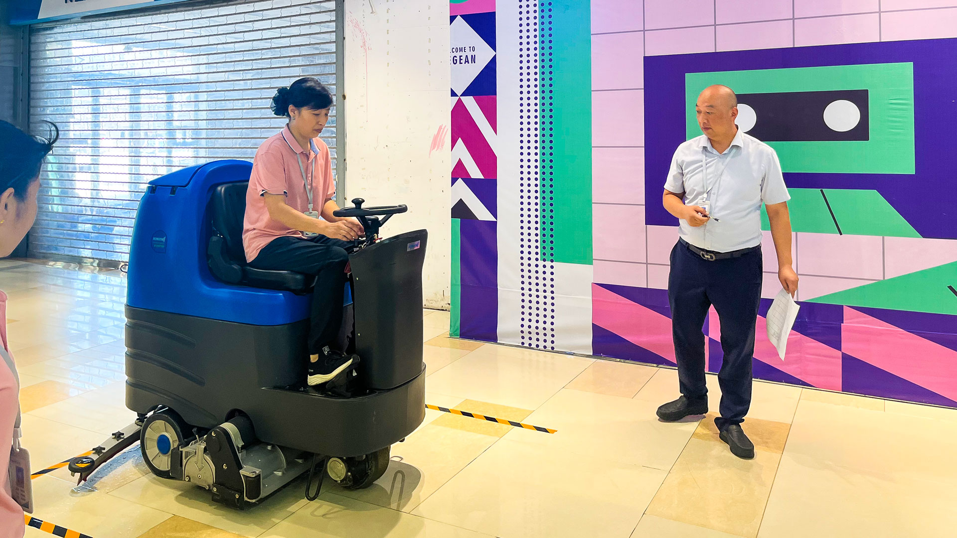 其次是,为提升员工的专业技能和服务质量,增强团队凝聚力,7月30日与31日,百货公司物业部组织开展了“洗地机使用技能大比武”活动,两个班组的保洁员共计16人参加。比赛主要从洗地机驾驶操作、洗地清洁和保养流程问答三个环节进行综合考评,模拟现实工作中的环境,如行驶障碍、遇人绕行、溜边洗地、定位停放等。为大家呈现了一场精彩的技能比武。