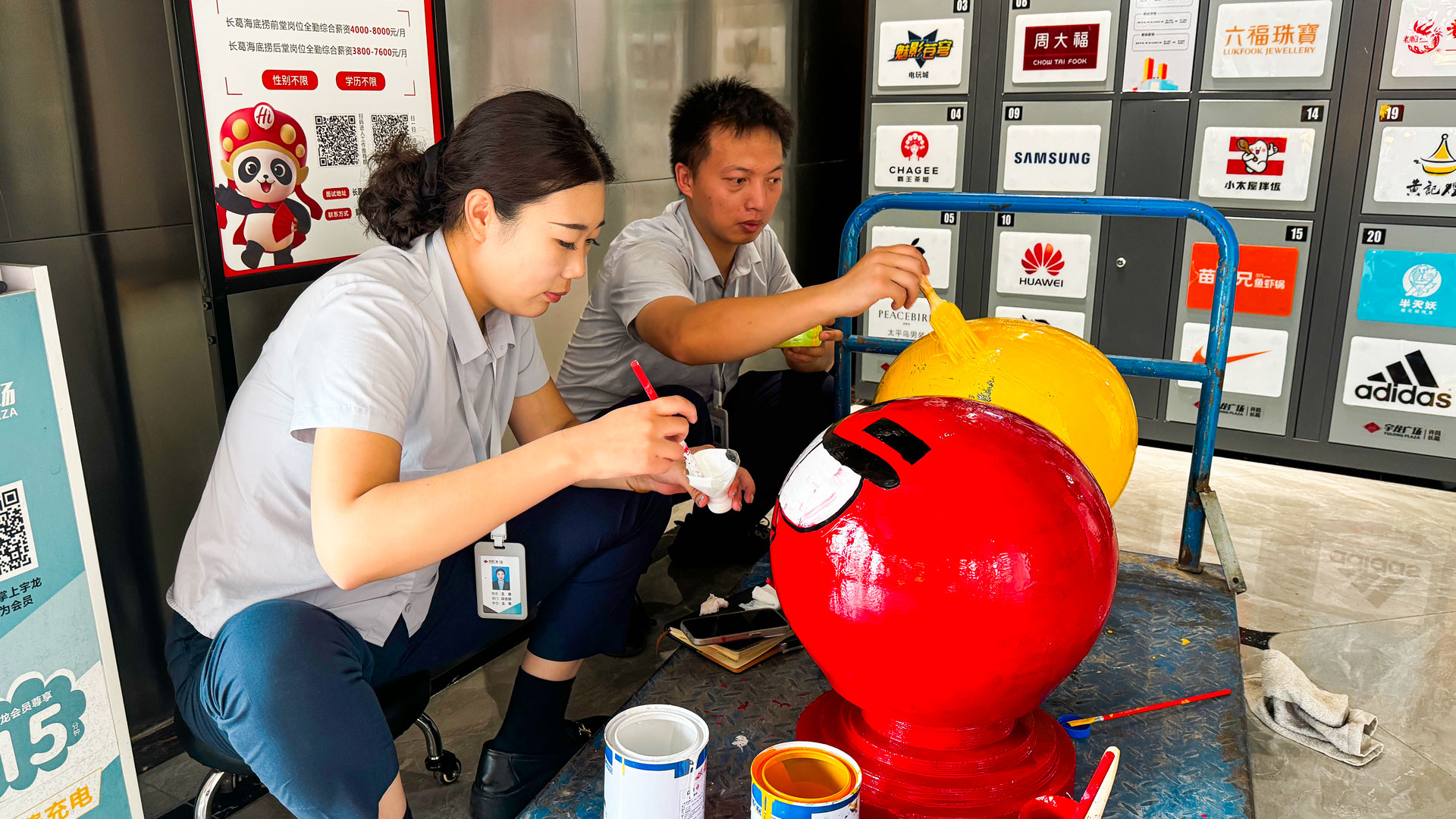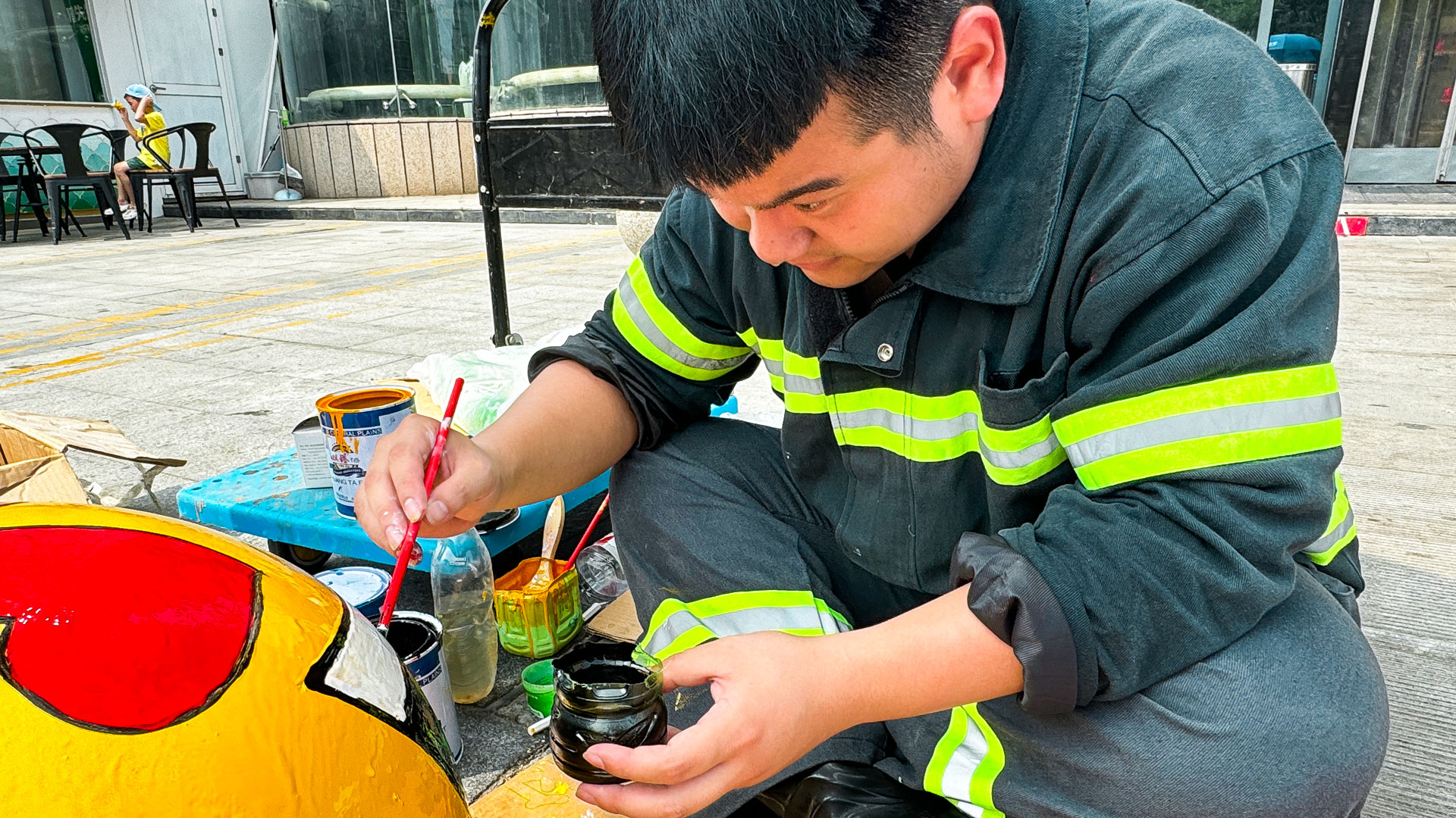 在大家画笔的精心点缀下,原本灰溜溜的石墩子瞬间换上了“新衣服”,呆萌可爱的艺术形象、鲜艳明亮的色彩搭配,让各个石墩子赋予了生命力,路过的顾客们纷纷驻足观看、赞不绝口。该活动也吸引了其他同事的加入,愤怒的小鸟、小猪佩奇、Hello Kitty等众多经典卡通形象纷纷呈现,尽管烈日当空,温度飙升,但这并未阻挡员工们的创作热情。