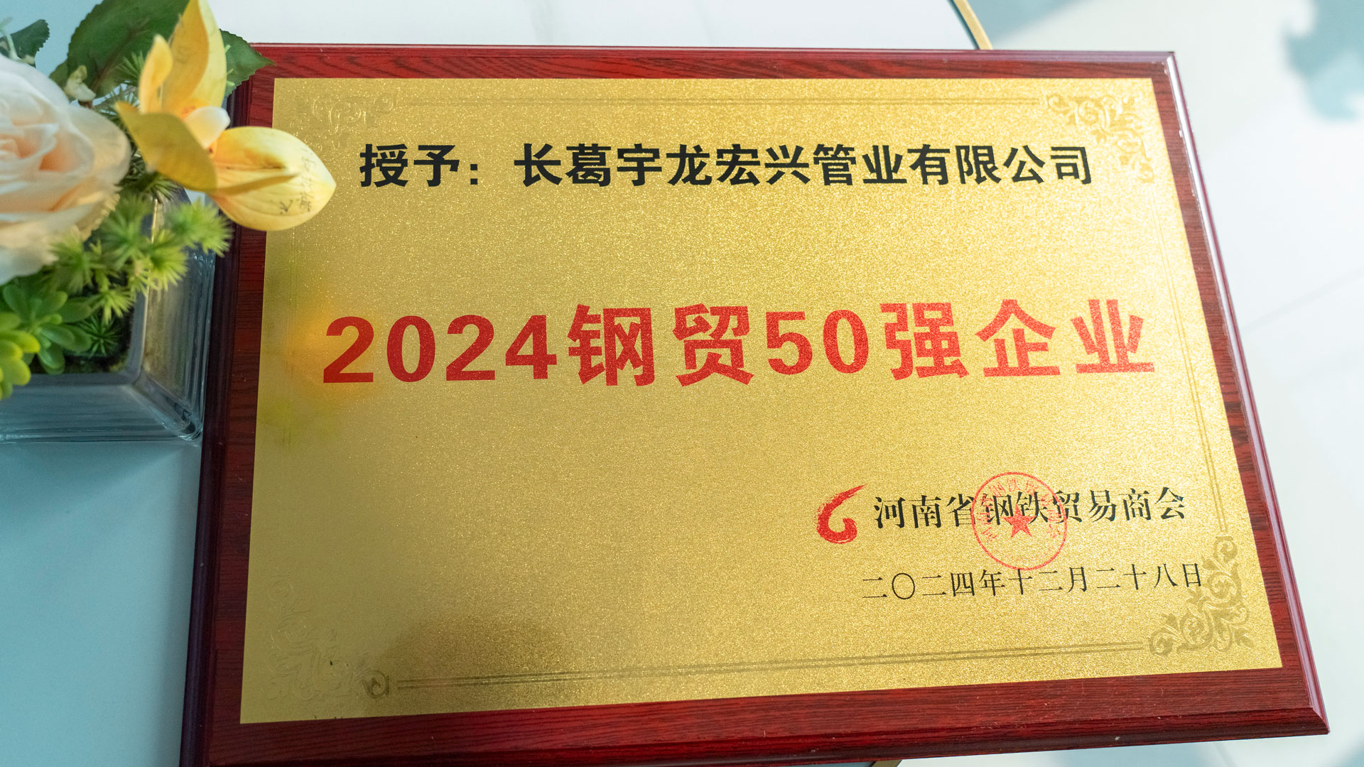 2024年12月28日,河南省钢贸商会三届四次会员大会在省会郑州盛大召开。来自全省十八个地市470余名钢贸企业家代表齐聚一堂。宏兴管业作为商会副会长单位受邀参会,并荣获“2024钢贸50强企业”称号。