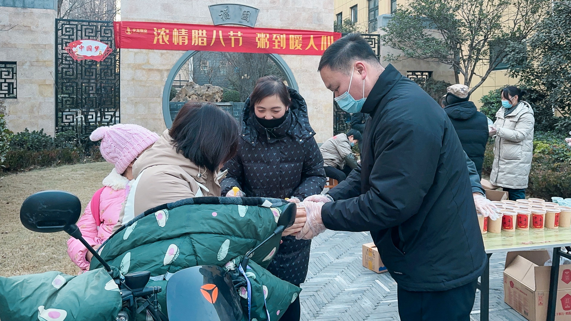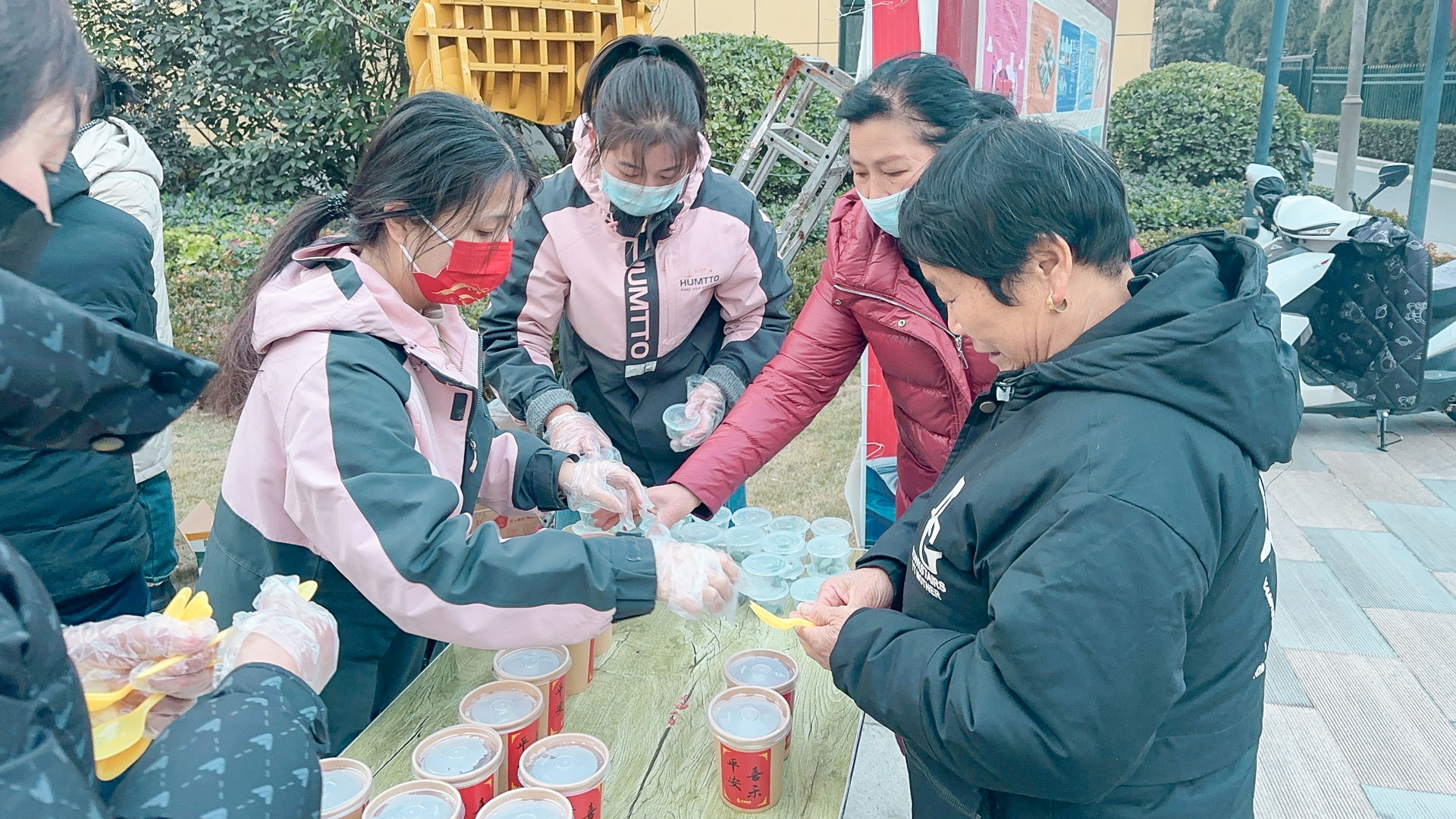当天五点左右,工作人员就提前上岗熬制腊八粥,天气虽冷,但工作人员热情不减,现场热气腾腾充满了生活的烟火气,同时给有需求的业主提前分装好了腊八蒜,守在园区的出入口为每位业主送上一份来自物业的温暖。同时针对园区内部分行动不便的独居老人,贴心管家一对一服务上门送上特别的节日问候,与他们一同分享腊八节的喜悦与温馨。