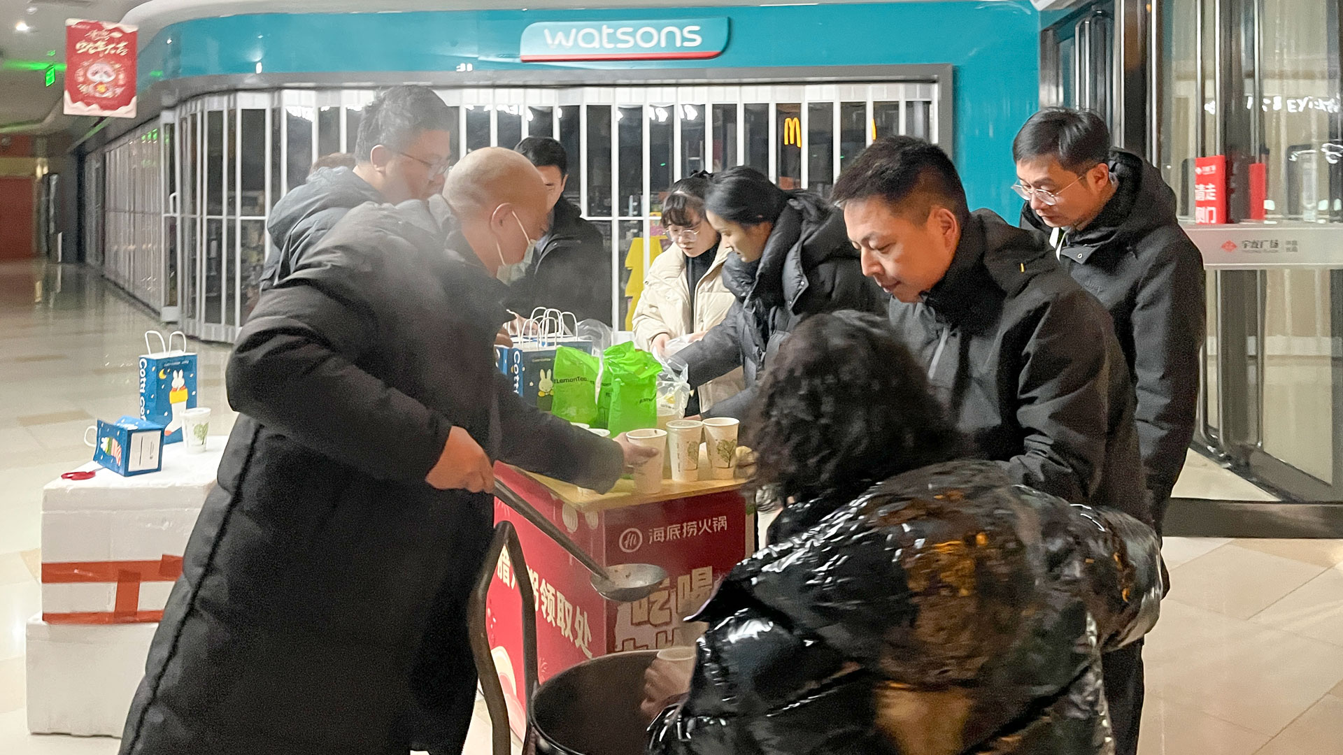 活动当天,海底捞和广场的工作人员早早准备好了热气腾腾的腊八粥,粥中包含了糯米、红豆、红枣、莲子、桂圆等多种食材,寓意着吉祥如意、团圆美满。在十字路口,工作人员将一碗碗香甜可口的腊八粥递到员工、环卫工人以及路上行人的手中,叮嘱他们注意防寒保暖,并送上节日的祝福。