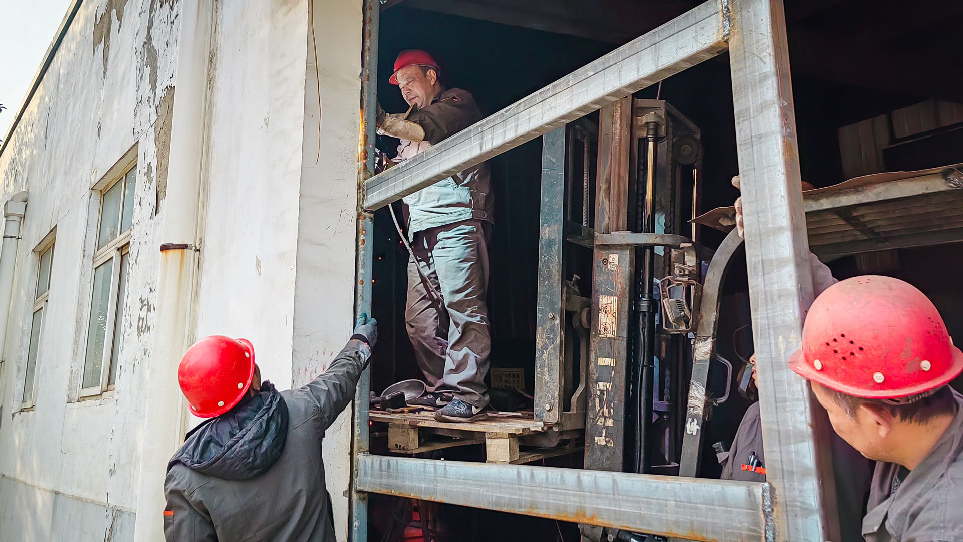 为了解决这一问题,2月16日,不锈钢公司赵保杰组织车间技术团队共同商讨解决方案。本着"零采购成本"的原则,大家决定利用现有的材料自行制作一扇新的铁门,并进行安装。在接下来的三天时间里,车间团队从自主设计到制造安装,密切配合,有条不紊地推进各项工作。