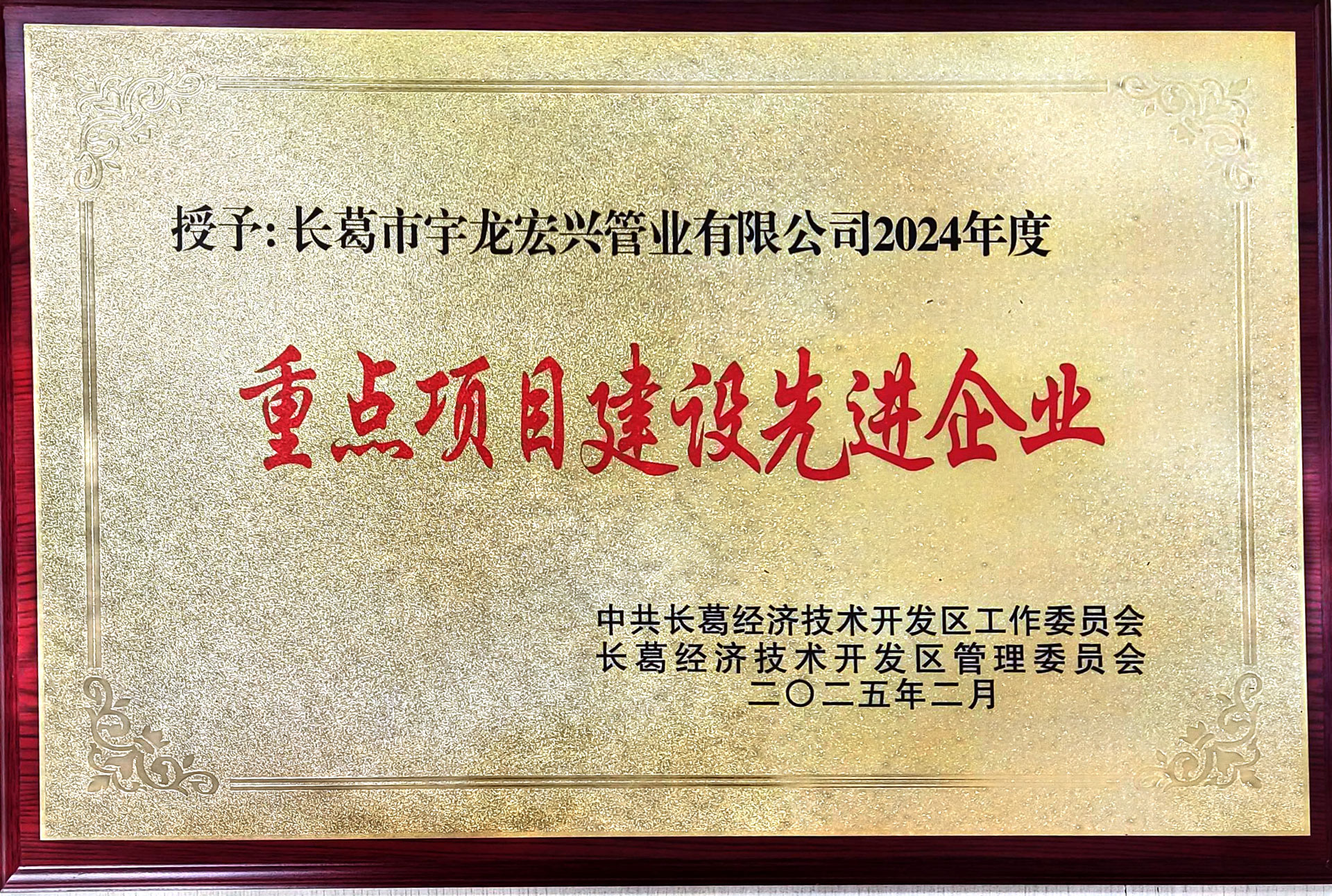 近日,在长葛经济技术开发区召开的2025年度工作会议上,宇龙宏兴管业因积极推进高端管材产业园项目,荣获 “重点项目建设先进企业” 称号。